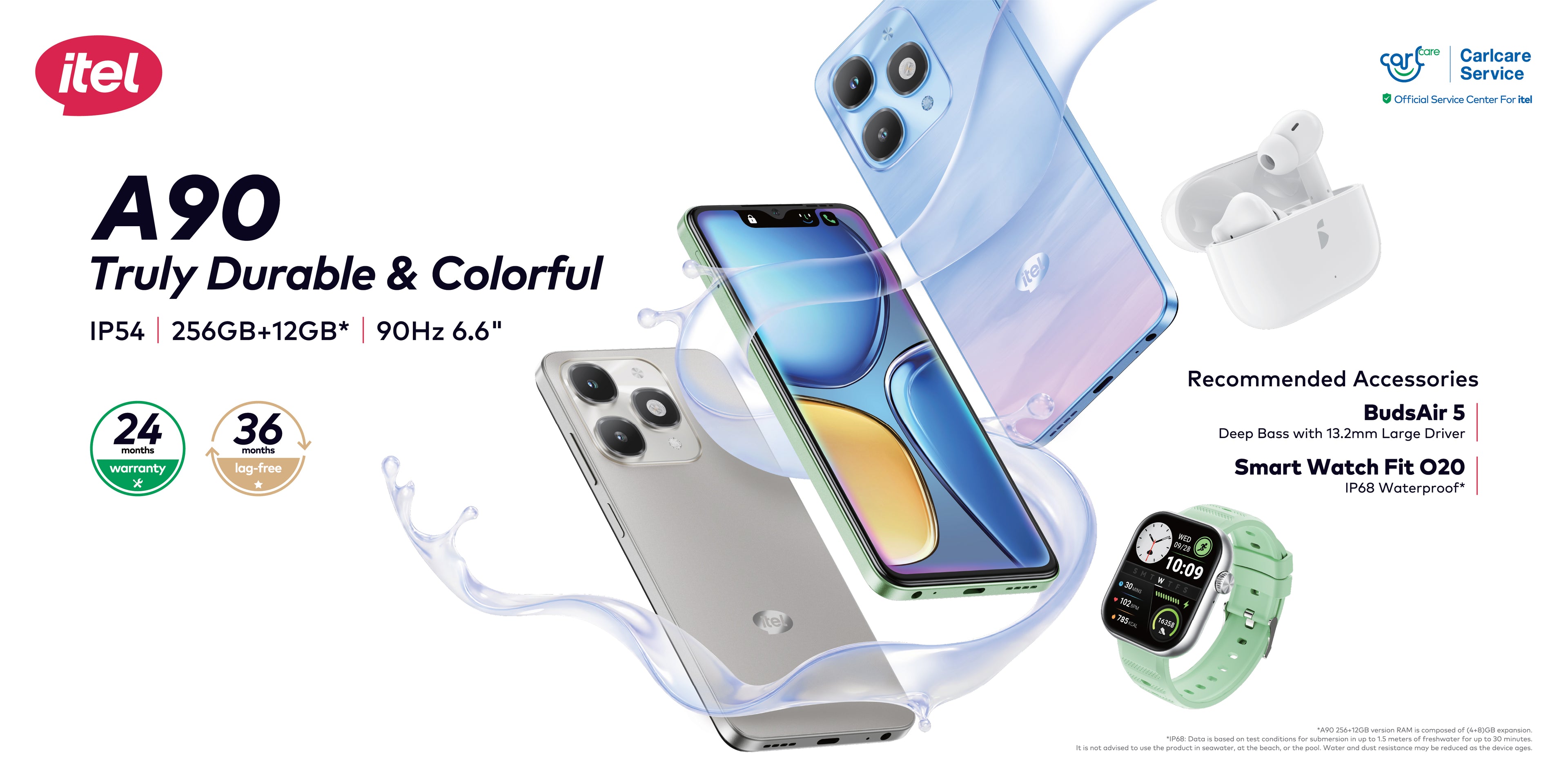 itel A90 6.6" 90hz Dynamic Display 5000mah 15W Fast Charge Android 128+4gb