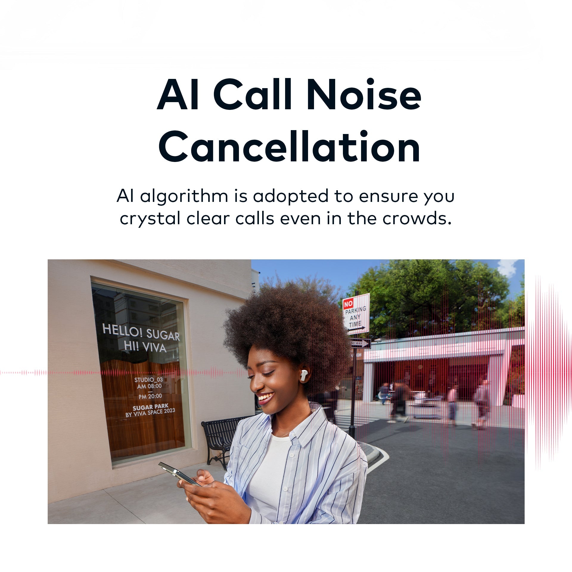 - Experience crystal-clear communication with AI Call Noise Cancellation, which effectively reduces background noise for superior call quality. Whether you're in a busy office or a bustling street, your conversations will be sharp and clear. Gamers will appreciate the low latency feature, offering a seamless and responsive experience with minimal audio delay. This ensures that every sound is in sync, enhancing your gaming immersion and performance.